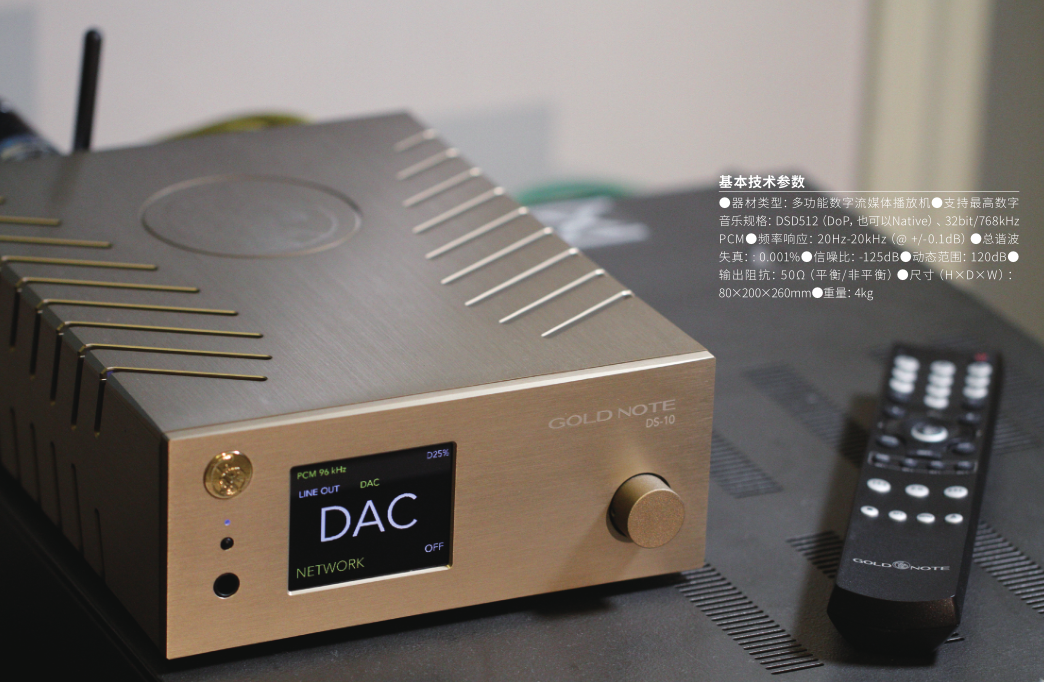 DS-10是一台针对小空间而设计的高素质多功能数字流媒体播放器,尽管在Gold Note里面属于入门级的东西,而事实上,DS-10刚好有我对小空间环境对听音乐的要求。第一,体积小;第二,可以舒心地听音乐。第三,附带功能多。从省钱,追求简洁至上的角度出发,声音是完全可以接受的。另外,DS-10还提供外置升级电源作为可选配件,这就说明了DS-10的声音可以更上一层楼。