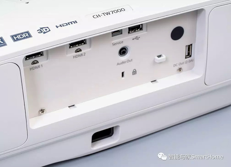 市场上很多万元级家用投影机都具有内置音箱,但我个人一直认为这是一个完全没必要的配置。因为首先内置音箱的音质绝大多数都是只能听个响,其次如果投影机是吊装,那么看电影时听到头顶上方传来的声音会让体验感变得很奇怪。不过爱普生CH-TW7000就采用了我比较欣赏的方式——蓝牙。将CH-TW7000连接上蓝牙音箱,不仅音质有了一定的保障,而且蓝牙音箱还能摆放在电视柜前,更有影院的感觉。