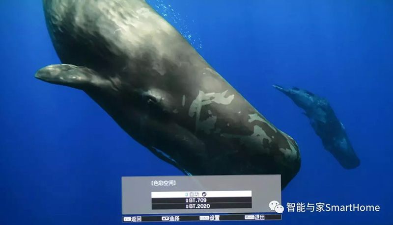 除了色彩,CH-TW7000还有一个特色就是支持10bit色深,这是我在这个级别投影机中第一次见到。而且,CH-TW7000还支持HDR,当播放4K HDR片源时,投影机就能识别到HDR片源,并自动切换到BT.2020色域空间。如果是非HDR片源,那么也会切换到BT.709色域。