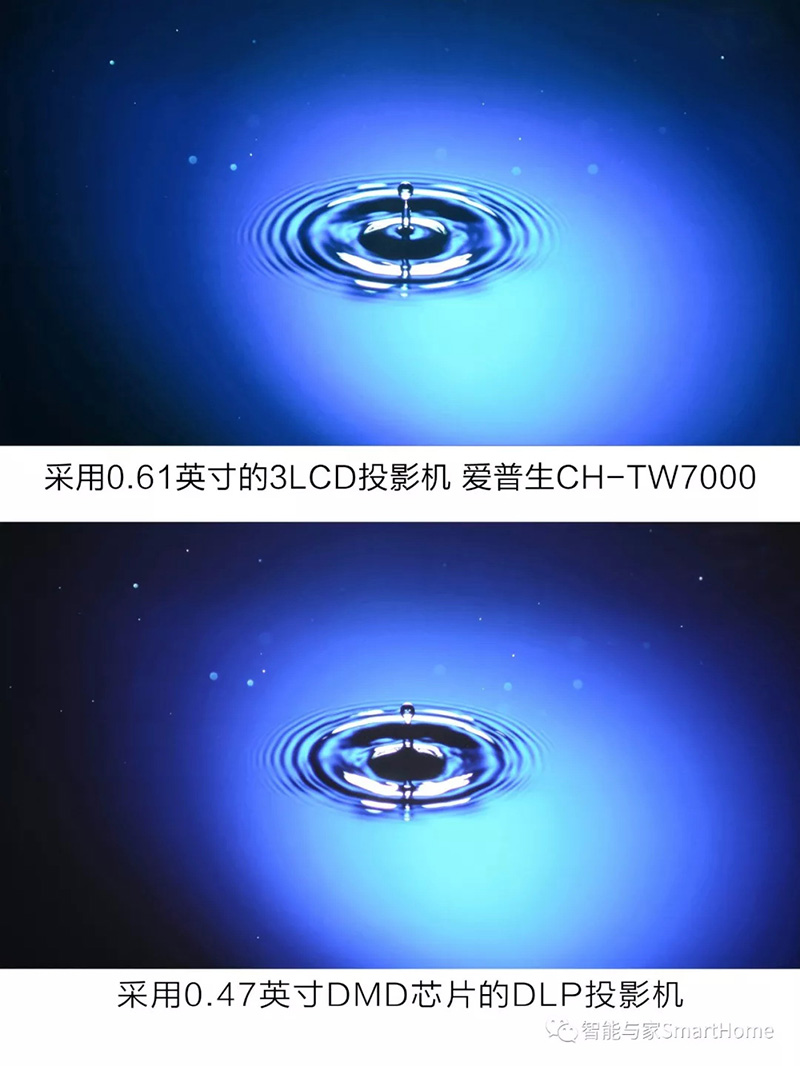 其实在面板采用上,CH-TW7000就已经具有一些优势。CH-TW7000采用了三块0.61英寸的LCD面板,大尺寸面板能让每个像素更大,也更亮,因此在其他条件相同的情况下,大尺寸面板出现噪点的几率更小。因此,在万元级4K投影产品这一范畴,0.61英寸的3LCD在最基础的底层面板方面相比0.47英寸的DLP具有画质上的优势。
