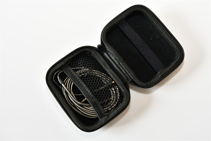 深色便携收纳盒看上去非常耐脏,外壳的抗压性也不错。内部可以收纳IE 900本体和耳机线。