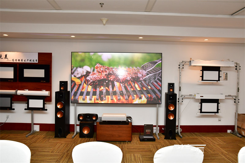 杰科和普光天泓展房现场全面展示了杰科 G5800与G5700 4K蓝光播放机以及Sharp夏普旗下的4K家庭影院投影机新品,并且现场带来了由夏普XG-LU300TA所组成了超短焦大屏融合方案。