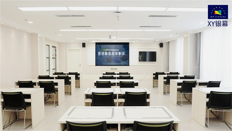 隐藏天花搭配黑晶抗光幕,是较为经典的“老搭档”,黑晶抗光幕具有较强的抗光性能,能做到具有高度还原色彩的效果,同时还可以起到保护眼睛的效果,是作为投影幕的不二之选。