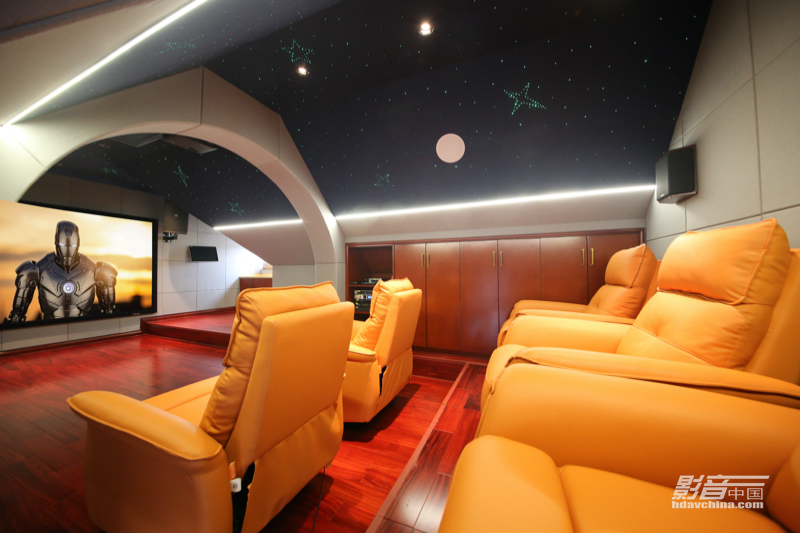 器材选配上,影院按照7.1全景声设计,采用英国猛牌的THX认证定制安装系列,搭配丹麦DALI 14英寸超低音,强强联手。视频采用优派4K家用投影机+施威110英寸画框幕,即使光线充足的情况下,也能很好地还原色彩。