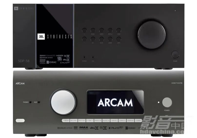 JBL和Arcam同属哈曼集团旗下影音品牌,而JBL Synthesis为美国著名品牌JBL的高端定制系列。JBL Synthesis SDP-58为环绕声处理器是/前级,SDR-38是合并式AV功放,两者最高能支持16通道输出(自带7声道功率放大器),而且本身自带Dirac Live Room Correction和Dirac Live Bass Control。在音频传输方面,SDP-58和 SDR-38除了提供HDMI、光纤和同轴等常见的接口外,还提供了DANTE接口传输。至于Arcam品牌,目前AVR41是环绕声处理器/前级,其余三款是合并式AV功放。它们同样具备Dirac Live Room Correction功能,而Dirac Live Bass Control功能需要付费升级才能使用。Arcam是经典的英国音响品牌,有漫长的HIFI音响设计历史,使得Arcam的AV功放在声音取向方面往HIFI特质的方向走。