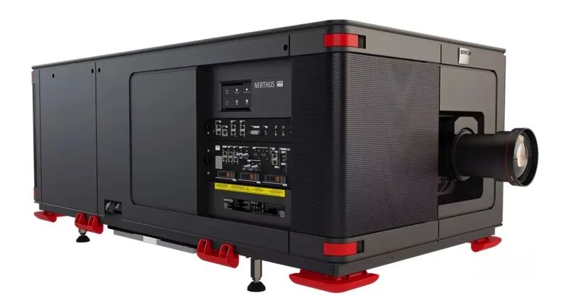 作为高端投影机市场的常客,Barco在2023年CEDIA展会上推出新旗舰机型Nerthus,采用德州仪器(TI)最新的原生4K DLP Cinema芯片和广受好评的Barco Alchemy ICMP-X,画面分辨率为4096x2160。Nerthus支持高达70%的镜头移位,为投影提供了新水平的安装灵活性,而这种灵活性使其具备垂直安装投影机的能力。Nerthus使用最新的VHC(极高对比度)镜头,能提供1000:1 ANSI对比度。Nerthus拥有32000流明,具备了100% BT.2020色域覆盖能力。