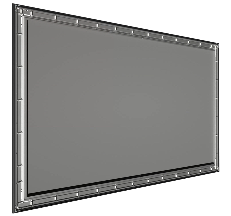炫幕旗下另外一款针对家庭影院投影机的长焦抗光屏,100英寸长焦菲涅尔画框抗光屏在光学性能方面,与前面所介绍的长焦抗光硬屏F2一样,都拥有两种型号,包括2.0增益、90%抗光性能,以及3.0增益、85%抗光性能两种,而两者的水平最佳可视角度都能达到135度,能够适配各种不同光输出亮度的家庭影院投影机与不同环境光线条件的客厅。不过最大的不同之处在于这款属于可卷曲运输,便于高层上楼与入户安装的画框型抗光屏。当然,在安装和维护方面则是同样出色,兼容吊装与正装,屏幕表面抗划,耐用性高。