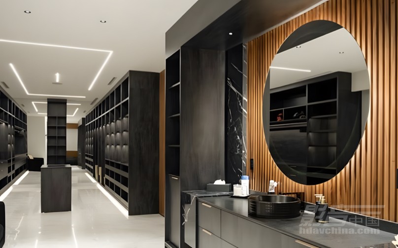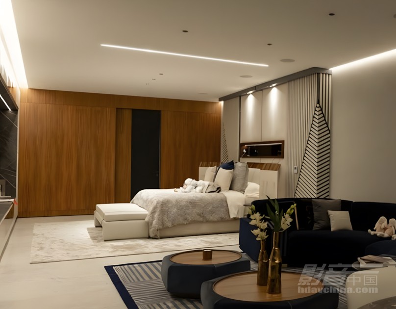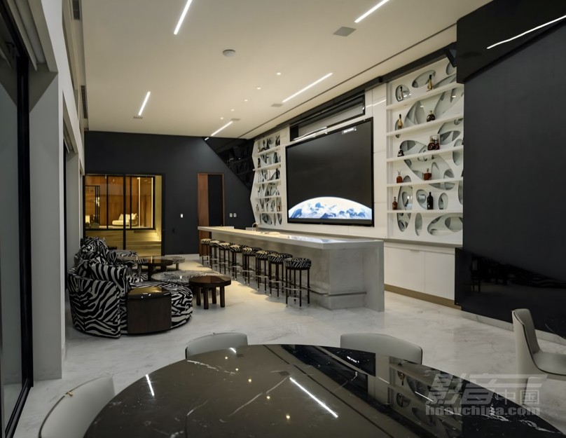 视听设计面临声场覆盖与音质的双重挑战。鉴于业主热衷举办派对,住宅需配备多功能高性能音响系统。屋顶花园设有带DJ接口的顶级音响,完美适配现场演出。游戏室配置高性能音响与DMX驱动LED灯带,六种声光律动场景带来夜店级体验。