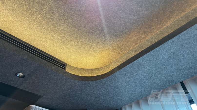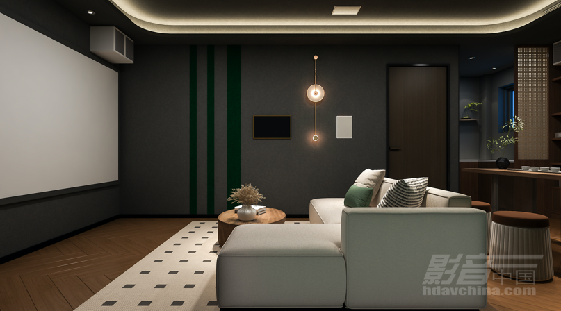 深色系的墙面与专业遮光窗帘,共同为打造沉浸式观影氛围打下扎实基础,并且有效解决了声光的反射问题。
