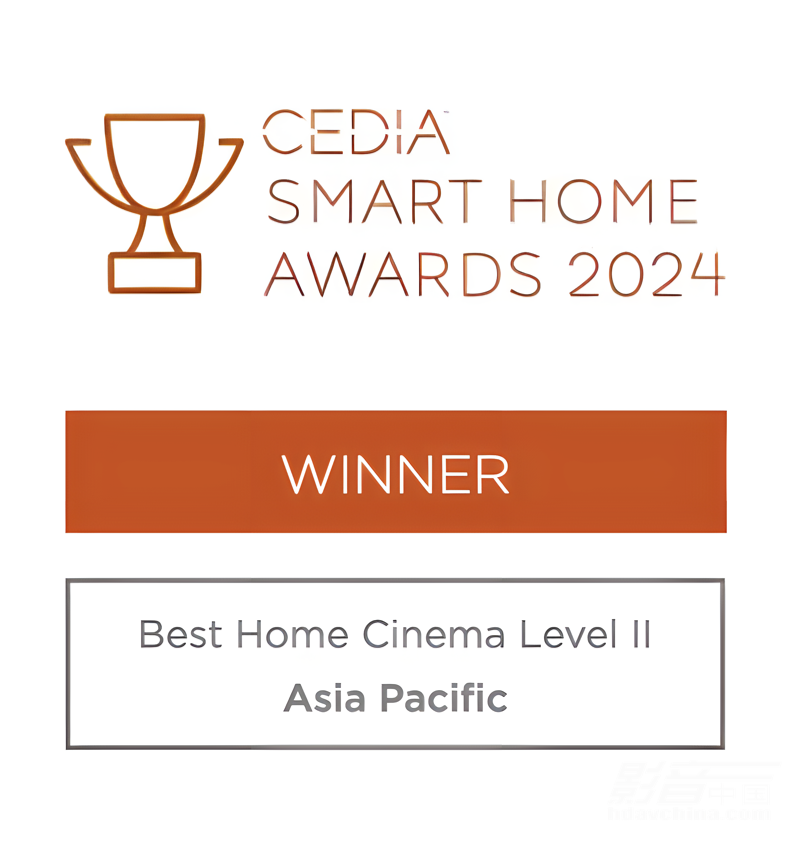 由技术集成商Wavetrain Cinemas所设计的SIGNATURE CINEMA方案获得CEDIA Smart Home Awards 2024亚太地区最佳家庭影院设计等级二类别大奖。