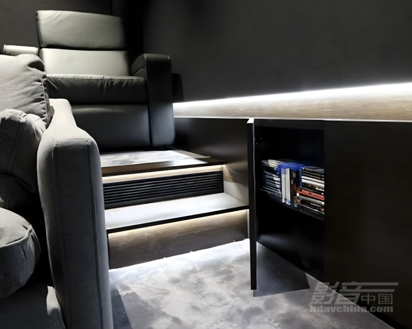 D-Box座椅系统通过触觉维度将观影体验提升至全新境界。这种动感沙发技术将录音中原本无意的次低频信号转化为刻意设计的感官冲击。实际体验后,绝大多数Wavetrain业主都会选择加装此系统,认可其对电影叙事深度的增强效果。照明设计兼顾美学与功能。连续LED灯带消除视觉干扰,与室内设计无缝融合。战略布置的筒灯支持清洁、阅读等多重场景,确保辅助功能绝不干扰观影体验。